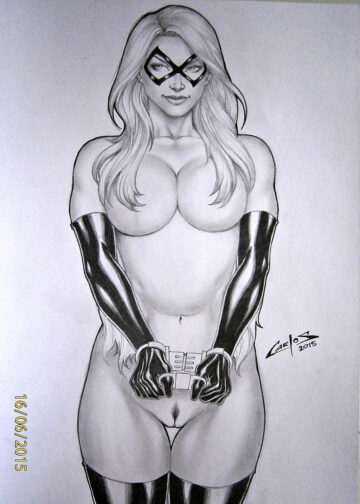 412103 BustyBusty Hentai – 1girl almost nude bare shoulders big breasts black cat (marvel) black choker by Belver