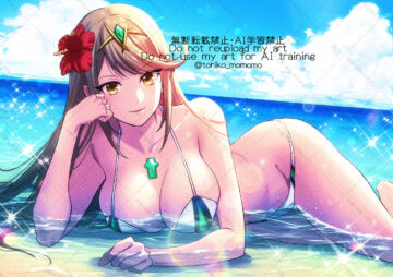 40899 BustyBusty Hentai – 1girl adversarial noise alluring bare shoulders beach big breasts bikini by calum1998